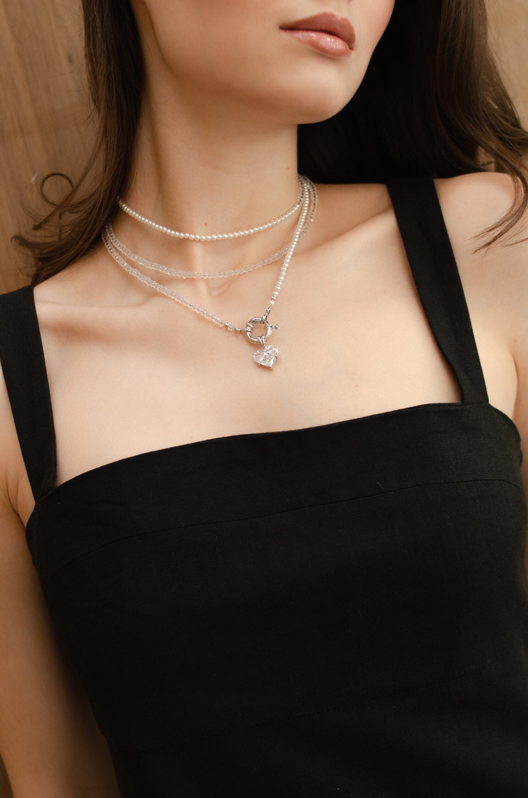 жемчуг Майорка, хрусталь, подвеска сердце